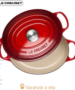 La casseruola ovale con coperchio EVOLUTION by LE CREUSET in ghisa smaltata vetrificata è ideale per cucinare in modo efficiente e sicuro. Grazie alla superficie resistente ai graffi, all’usura e al coperchio ermetico, garantisce cotture omogenee. È compatibile con tutte le fonti di calore ed è idonea per conservazione in frigorifero e congelatore. Facile da usare e trasportare, offre un’impugnatura comoda. Questa casseruola è ecologica, priva di nickel e lavabile in lavastoviglie, rendendo la pulizia semplice e veloce. Prodotta artigianalmente in Francia, ogni pezzo è unico.
