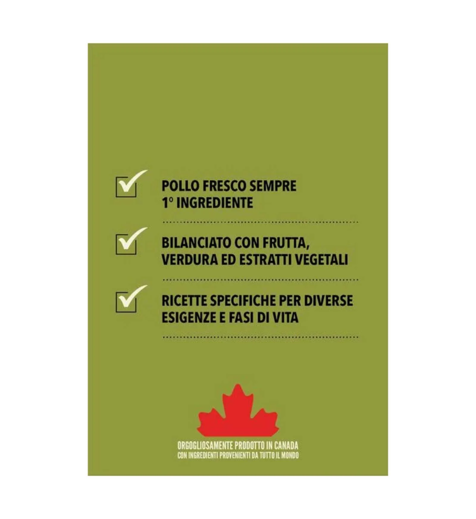 ACANA CANE PUPPY LARGE BREED DA 11,4 KGDescrizione:Acana cane Puppy Large Breed da 11,4 kgDettagli:Alimento completo e specifico per cuccioli che da adulti peseranno più di 25 kg.L’alimentazione ideale per i cuccioli di razze di grossa taglia consiste in una dieta ricca di ingredienti animali e proteine, per lo sviluppo della massa muscolare, con un apporto limitato di carboidrati e calorie in modo da mantenere un peso corporeo equilibrato e ridurre il carico sulle ossa e le articolazioni che si stanno sviluppando.Per questo motivo Acana Puppy Large Breed è ricco di pollo allevato a terra, platessa pescata in natura e uova deposte in nido, consegnati FRESCHI e nelle proporzioni della preda intera (WholePrey).Privi di cereali e carboidrati ad assorbimento rapido come riso, tapioca o patate, Acana è invece ricco di proteine della carne, per favorire al massimo lo sviluppo e le condizioni di salute del cucciolo.Prodotti usando gli ingredienti migliori e più freschi del Canada, gli alimenti Acana Biologicamente Appropriati fanno in modo che il cucciolo sia sano, allegro e forte.Composizione:Carne di pollo fresca (16 %), pollo disidratato (15 %), tacchino disidratato (14 %), lenticchie rosse, piselli interi, interiora di pollo fresche (fegato, cuore, rene) (6 %), aringa disidratata (4 %), uova intere fresche (4 %), platessa ferruginea intera fresca (4 %), olio di aringa (3 %), erba medica essiccata al sole (2 %), fave (2 %), lenticchie verdi, piselli gialli interi, fibra di piselli, grasso di pollo (2 %), cartilagine di pollo fresca (2 %), alga bruna kelp disidratata, zucca intera fresca, zucca popone intera fresca, pastinaca intera fresca, cavolo riccio fresco, spinaci freschi, senape indiana fresca, cime di rapa fresche, carote intere fresche, mele Red Delicious fresche, pere Bartlett fresche, fegato di pollo liofilizzato, fegato di tacchino liofilizzato, mirtilli rossi interi freschi, mirtilli interi freschi, radice di cicoria, curcuma, cardo mariano, radice di bardana, lavanda, radice di altea, bacche di rosa.Componenti analitici:Proteina grezza (min.) 33 %, Oli e grassi grezzi (min.) 15 %, Ceneri grezze (max.) 7 %, Fibra grezza (max.) 6 %, Umidità (max.) 12 %, Calcio (min.) 1.4 %, Fosforo (min.) 1 %, Acidi grassi Omega-6 (min.) 2.4 %, Acidi grassi Omega-3 (min.) 1.2 %, DHA (min.) 0.4 %, EPA (min.) 0.4 %, Gluosamina (min.) 1400 mg/kg, Condroitinsolfato (min.) 900 mg/kg, Acido Linoleico (min.) 2.2 %, Carboidrati (NFE) 27 %.Additivi:Zinco. Naturalmente conservato con Vitamina E.Vitamine: Vitamina A 12 KIU/kg, Vitamina D3 1,200 IU/kg, Vitamina E 130 IU/kg, Vitamina B1 (Tiamina) 8 mg/kg, Vitamina B2 (Riboflavina) 7 mg/kg, Vitamina B3 (Niacina) 60 mg/kg, Vitamina B5 (Acido Pant.) 20 mg/kg, Vitamina B6 (pyridoxine) 2.75 mg/kg, Vitamina B12 0.08 mg/kg, Acido Folico 1.50 mg/kg, Colina 2,200 mg/kg.Minerali: Sodio 0.36 %, Cloruro 0.53 %, Potassio 0.75 %, Magnesio 0.13 %, Ferro 190 mg/kg, Zinco 200 mg/kg, Rame 20 mg/kg, Manganese 12.5 mg/kg, Iodio 1.9 mg/kg, Selenio 0.65 mg/kg.Amminoacidi: Lisina 2.30 %, Treonina 1.34 %, Metionina 0.69 %, Isoleucina 1.40 %, Leucina 2.45 %, Valina 1.71 %, Arginina 2.44 %, Fenilalanina 1.45 %, Istidina 0.75 %, Triptofano 0.35 %, Cistina 0.38 %, Tirosina 0.98 %, Metionina-Cisteina 1.07 %, Fenilalanina-Tirosina 2.43 %.Piante officinali: Radice di cicoria 400 mg/kg, Radice ci curcuma 100 mg/kg, Cardo mariano 100 mg/kg, Radice di bardana 100 mg/kg, Lavanda 100 mg/kg, Radice di altea 100 mg/kg, Bacche di rosa 100 mg/kg.Formato: 11,4 kg