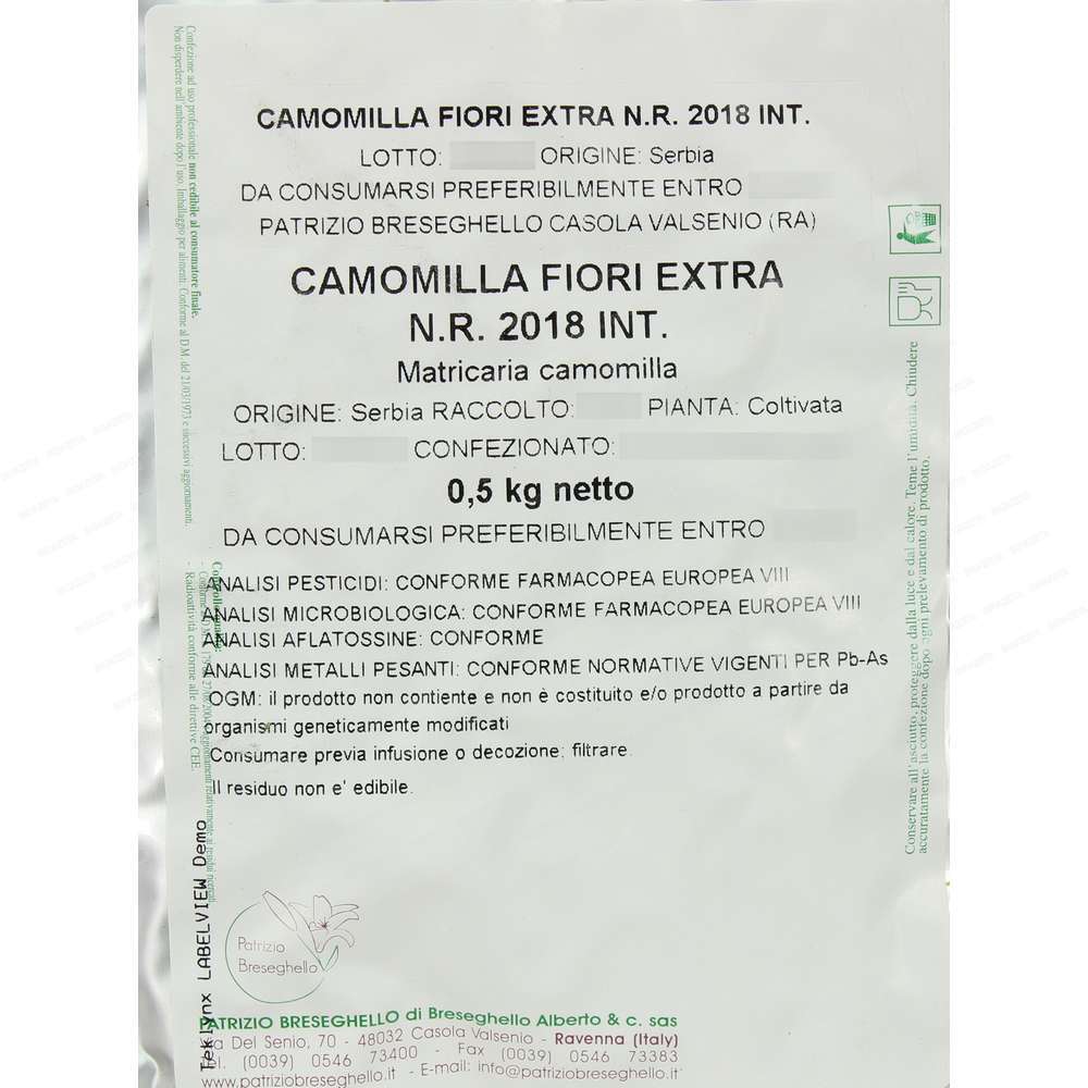 Camomilla matricaria fiori 1 extra 500g, La Patrizio Breseghello, azienda di importazione, lavorazione e commercializzazione di piante, ha la propria sede a Casola Valsenio, in provincia di Ravenna; il “paese delle erbe e dei frutti dimenticati”, dove 450 specie di piante officinali, fanno bella mostra di se in un Giardino delle Erbe. Fra i fattori differenziali e distintivi dell’ azienda vi sono l’approvvigionamento diretto delle materie prime (quando possibile) allo scopo di accorciare la filiera; Le tecniche di lavorazione e conservazione finalizzate all’inalterabilità dei principi attivi; la doppia cernitura (meccanizzata e a mano); la totale assenza di aromi nelle basi composte: spesso utilizzati per conferire gradevolezza al prodotto. Tutti i prodotti (piante officinali, tè e infusi, vegetali in polvere, tisane confezionate e altro), vengono controllati da un laboratorio di analisi prima di essere immessi nel mercato. Sono oltre 200 le specie botaniche selezionate e lavorate dalla Patrizio Breseghello. Ogni fase della trasformazione è condotta con la massima cura e attenzione e ha lo scopo di ottenere il miglior taglio tisana reperibile sul mercato. La cernitura a mano, tratto distintivo dell’azienda, viene effettuata successivamente a quella meccanica con l’obiettivo di rendere ancora più puro il prodotto e distinguibili gli elementi vegetali adeguatamente sminuzzati (foglie, radici, fiori, cortecce). Questa operazione permette di liberare il preparato da ogni impurità ed eventuali scorie estranee alla pianta, consentendo al cliente il triplo beneficio di una formulazione buona, naturale ed efficace. La Patrizio Breseghello attraverso il proprio laboratorio di ricerca e una conoscenza a 360 gradi delle specie vegetali utilizzate, ha ideato una linea di basi composte rispondenti alle più comuni necessità. La composizione di una tisana è una scienza! Tutte le basi di erbe aromatiche ovviamente naturali e prive di organismi geneticamente modificati, possono essere consumate anche come tisane fredde mantenendo inalterate le proprietà.
