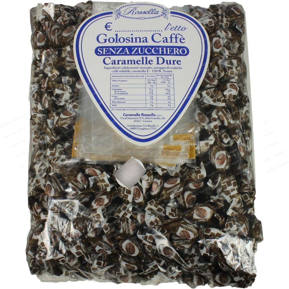 Caramelle caffè senza zucchero 1kg Golosina di Rossella storica azienda nata nel 1897 Santo Rossello, recuperando da antichi testi di confetteria la ricetta del fondant, iniziava la produzione di bonbons finissimi identici a quelli che ancora oggi Rossella produce.