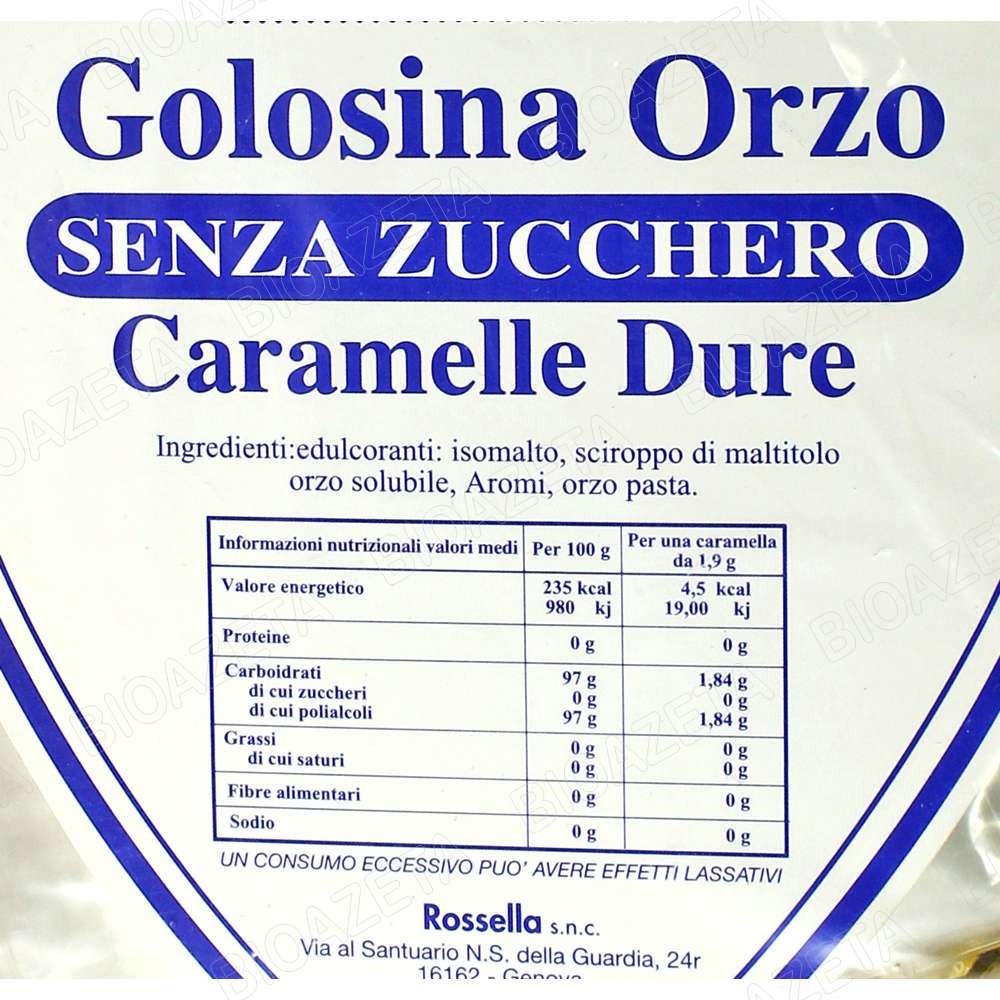 Caramelle orzo senza zucchero 1kg Golosina di Rossella storica azienda nata nel 1897 Santo Rossello, recuperando da antichi testi di confetteria la ricetta del fondant, iniziava la produzione di bonbons finissimi identici a quelli che ancora oggi Rossella produce.