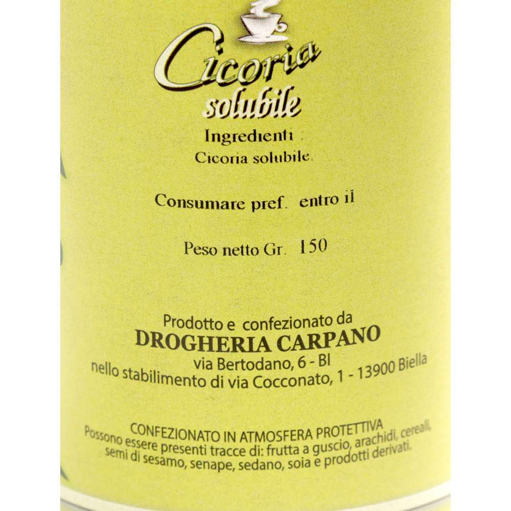 Cicoria solubile 150g Carpano; La procedura è la medesima del normale caffè solubile, ossia versare la polvere in una tazza con acqua bollente, mescolare e gustare.