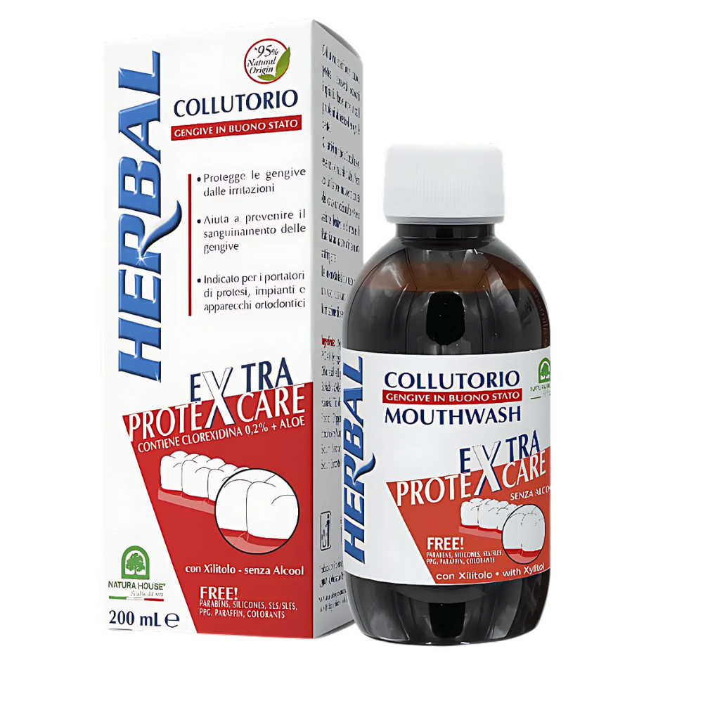 Collutorio Extra Protexcare 200ml Natura House; Protegge e rafforza le gengive, prevenendo sanguinamenti e infiammazioni. La sua formula delicata, arricchita con estratti naturali, lo rende ideale per l’uso quotidiano, anche in caso di gengive sensibili.
