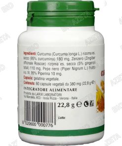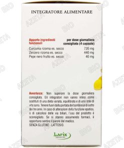 Curcuma zenzero pepe nero 60 capsule Larix; Integratore Alimentare Larix Utile contro le Infiammazioni e i Dolori Ricorrenti a Muscoli ed Articolazioni.