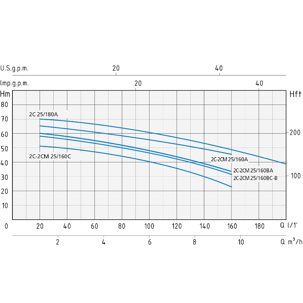 | 2CM 25/160C | Monofase | 1.5 | 1.1 | 2.2 | 160 | 51 | 1″ 1/4 | 1″ |