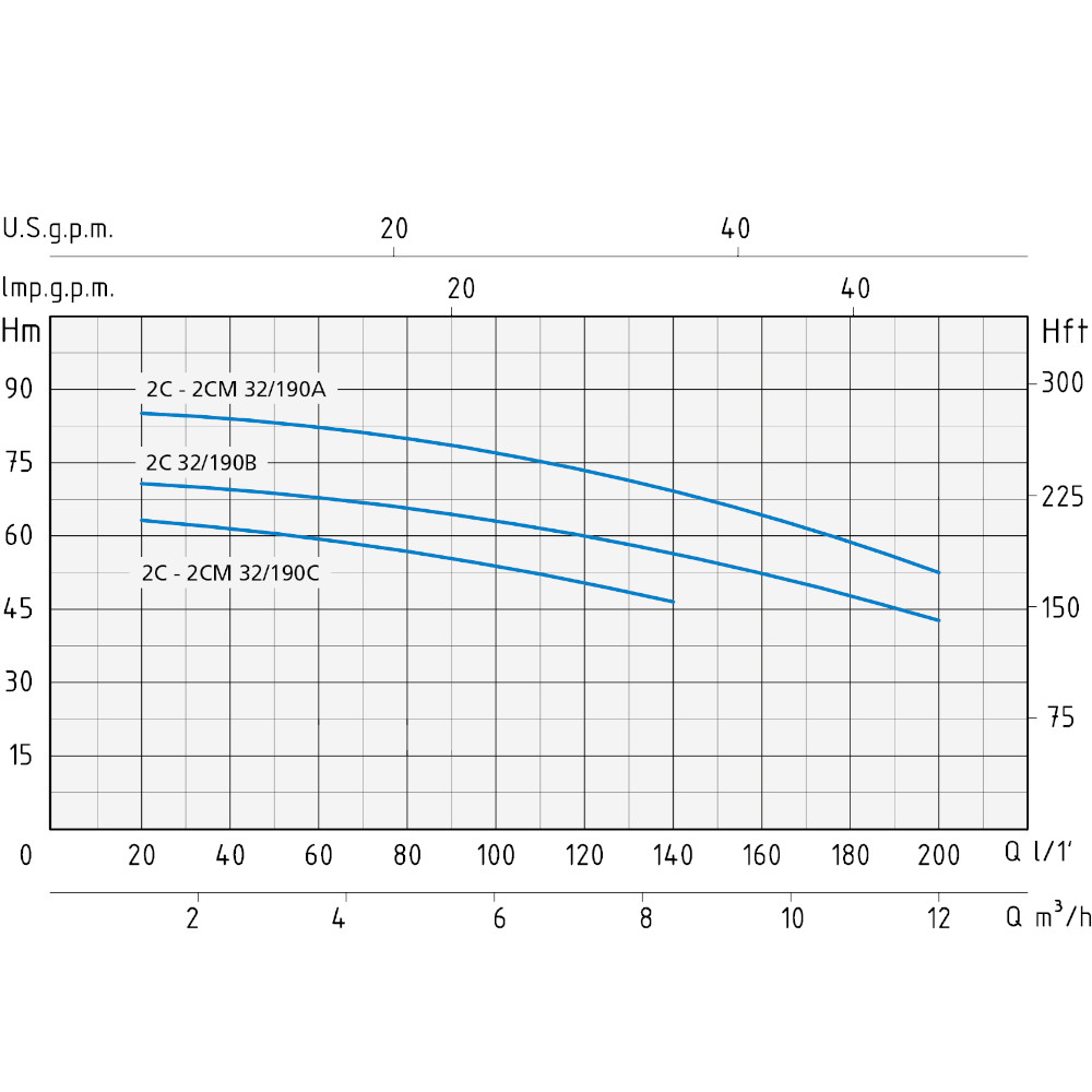| 2C 32/190B | Trifase | 4 | 3 | 4.5 | 200 | 74 | 1″ 1/2 | 1″ 1/4 |