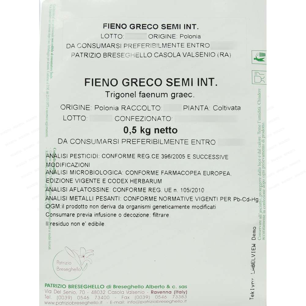 Fieno greco semi interi 500g, La Patrizio Breseghello, azienda di importazione, lavorazione e commercializzazione di piante, ha la propria sede a Casola Valsenio, in provincia di Ravenna; il “paese delle erbe e dei frutti dimenticati”, dove 450 specie di piante officinali, fanno bella mostra di se in un Giardino delle Erbe. Fra i fattori differenziali e distintivi dell’ azienda vi sono l’approvvigionamento diretto delle materie prime (quando possibile) allo scopo di accorciare la filiera; Le tecniche di lavorazione e conservazione finalizzate all’inalterabilità dei principi attivi; la doppia cernitura (meccanizzata e a mano); la totale assenza di aromi nelle basi composte: spesso utilizzati per conferire gradevolezza al prodotto. Tutti i prodotti (piante officinali, tè e infusi, vegetali in polvere, tisane confezionate e altro), vengono controllati da un laboratorio di analisi prima di essere immessi nel mercato. Sono oltre 200 le specie botaniche selezionate e lavorate dalla Patrizio Breseghello. Ogni fase della trasformazione è condotta con la massima cura e attenzione e ha lo scopo di ottenere il miglior taglio tisana reperibile sul mercato. La cernitura a mano, tratto distintivo dell’azienda, viene effettuata successivamente a quella meccanica con l’obiettivo di rendere ancora più puro il prodotto e distinguibili gli elementi vegetali adeguatamente sminuzzati (foglie, radici, fiori, cortecce). Questa operazione permette di liberare il preparato da ogni impurità ed eventuali scorie estranee alla pianta, consentendo al cliente il triplo beneficio di una formulazione buona, naturale ed efficace. La Patrizio Breseghello attraverso il proprio laboratorio di ricerca e una conoscenza a 360 gradi delle specie vegetali utilizzate, ha ideato una linea di basi composte rispondenti alle più comuni necessità. La composizione di una tisana è una scienza! Tutte le basi di erbe aromatiche ovviamente naturali e prive di organismi geneticamente modificati, possono essere consumate anche come tisane fredde mantenendo inalterate le proprietà.