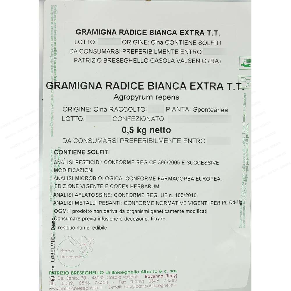 Gramigna radice bianca extra Taglio Tisana 500g, La Patrizio Breseghello, azienda di importazione, lavorazione e commercializzazione di piante, ha la propria sede a Casola Valsenio, in provincia di Ravenna; il “paese delle erbe e dei frutti dimenticati”, dove 450 specie di piante officinali, fanno bella mostra di se in un Giardino delle Erbe. Fra i fattori differenziali e distintivi dell’ azienda vi sono l’approvvigionamento diretto delle materie prime (quando possibile) allo scopo di accorciare la filiera; Le tecniche di lavorazione e conservazione finalizzate all’inalterabilità dei principi attivi; la doppia cernitura (meccanizzata e a mano); la totale assenza di aromi nelle basi composte: spesso utilizzati per conferire gradevolezza al prodotto. Tutti i prodotti (piante officinali, tè e infusi, vegetali in polvere, tisane confezionate e altro), vengono controllati da un laboratorio di analisi prima di essere immessi nel mercato. Sono oltre 200 le specie botaniche selezionate e lavorate dalla Patrizio Breseghello. Ogni fase della trasformazione è condotta con la massima cura e attenzione e ha lo scopo di ottenere il miglior taglio tisana reperibile sul mercato. La cernitura a mano, tratto distintivo dell’azienda, viene effettuata successivamente a quella meccanica con l’obiettivo di rendere ancora più puro il prodotto e distinguibili gli elementi vegetali adeguatamente sminuzzati (foglie, radici, fiori, cortecce). Questa operazione permette di liberare il preparato da ogni impurità ed eventuali scorie estranee alla pianta, consentendo al cliente il triplo beneficio di una formulazione buona, naturale ed efficace. La Patrizio Breseghello attraverso il proprio laboratorio di ricerca e una conoscenza a 360 gradi delle specie vegetali utilizzate, ha ideato una linea di basi composte rispondenti alle più comuni necessità. La composizione di una tisana è una scienza! Tutte le basi di erbe aromatiche ovviamente naturali e prive di organismi geneticamente modificati, possono essere consumate anche come tisane fredde mantenendo inalterate le proprietà.