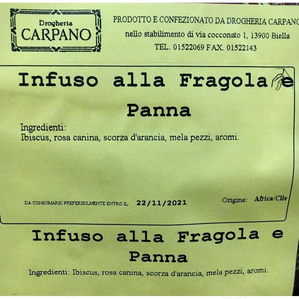 Infuso Fragola e panna 1kg Carpano; “Un infuso che ti porterĂ alla scoperta di un mondo dolce e goloso, come quello di una pasticceria.”