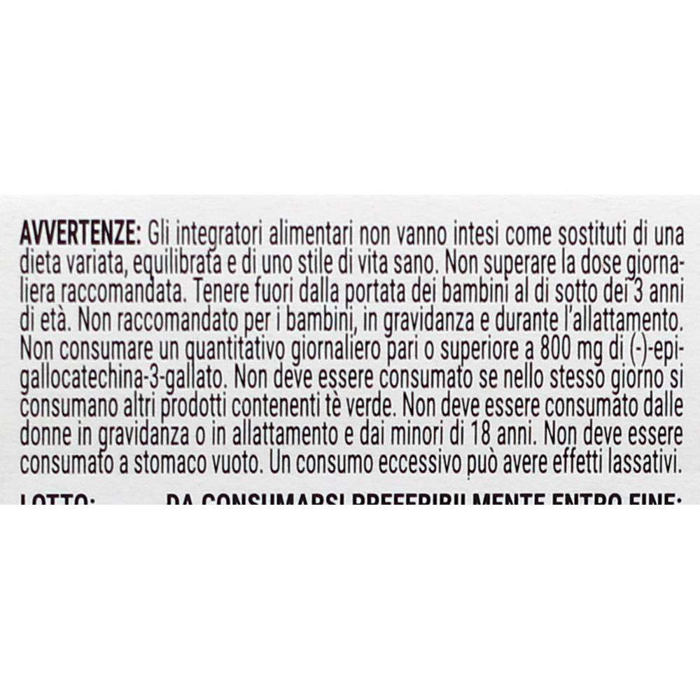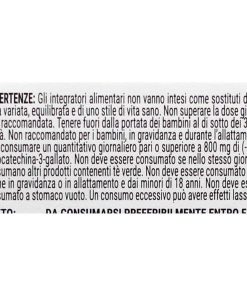 Tè Verde estratto secco 80mg di cui polifenoli totali 16mg, di cui EGCG 2,4 mg di cui Caffeina 4mg