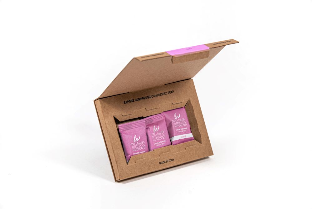 LeTabs è una forma innovativa di sapone. Si presenta come una compressa colorata da 8g, da sciogliere in acqua (meglio se calda). La compressa è lievemente effervescente e sciogliendosi libera nell’acqua i suoi componenti cosmetici, trasformando la semplice acqua del rubinetto in un vero e proprio sapone liquido.