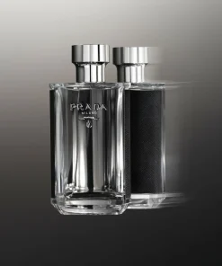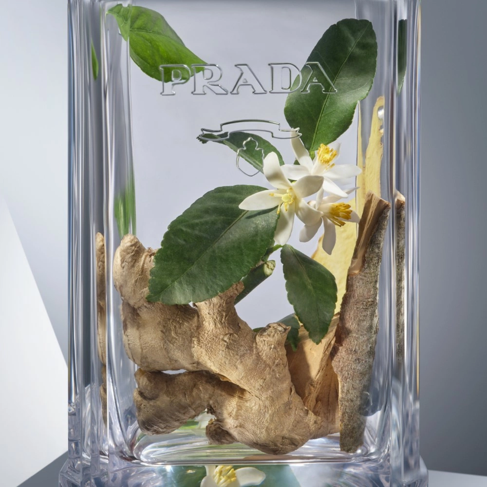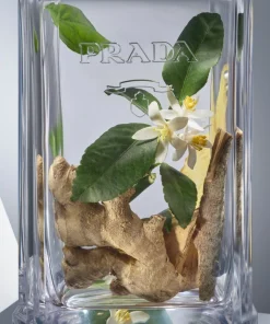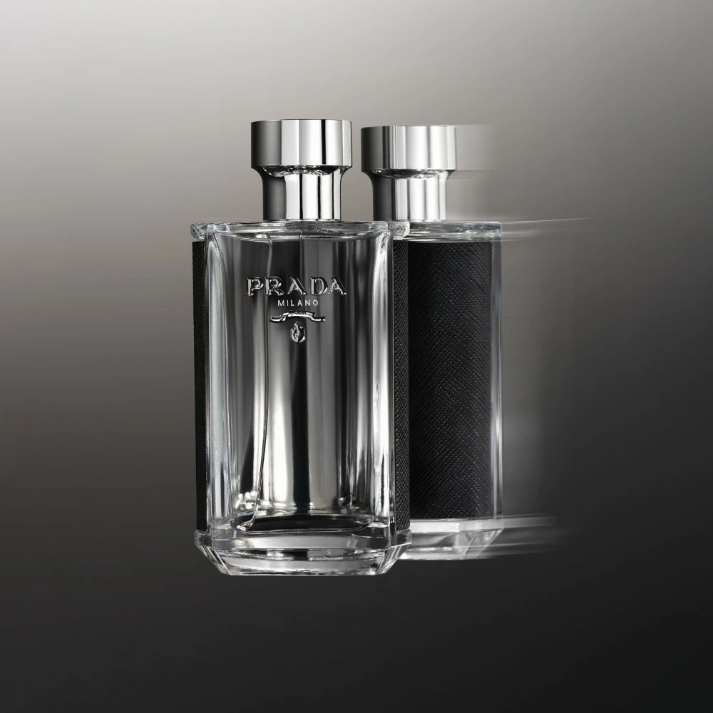 Il design del flacone rimanda inequivocabilmente ai codici della moda Prada. Un flacone dalla forma semicircolare e caratterizzato dal logo della casa di moda, rivestito con pelle effetto saffiano.