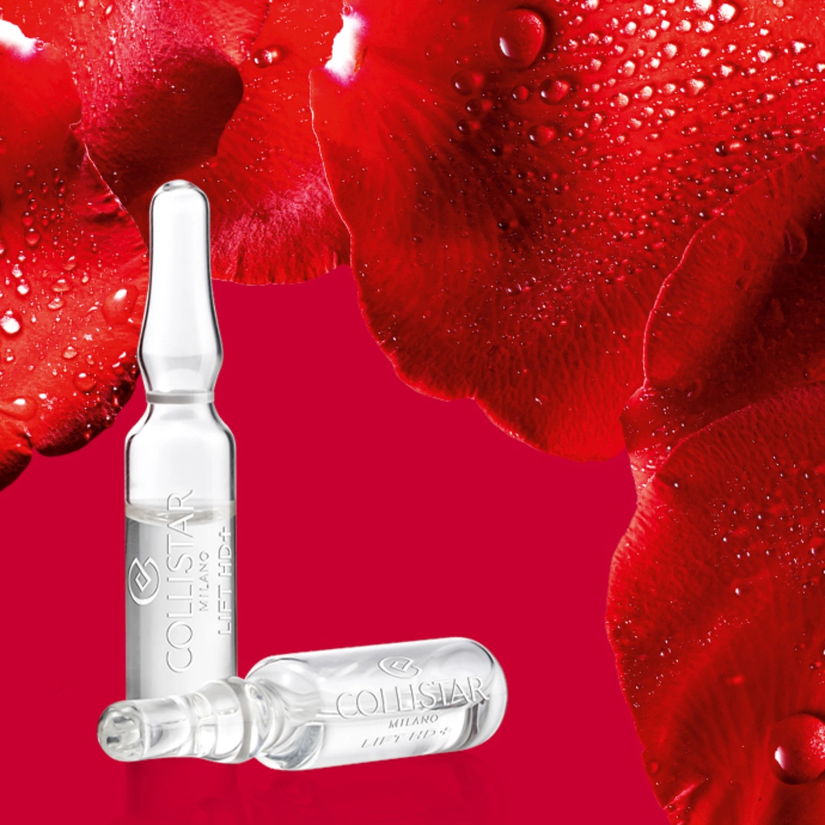 Fiale lifting potenziate con il 100% Acqua di Rosa Tea Italiana, ideali come intervento d’urto prima di una serata importante o quando il viso appare stanco.