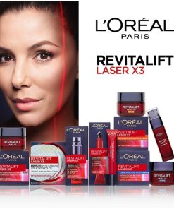 Trattamento occhi anti-età ad azione anti-rughe efficace e visibile, Corregge le rughe, ritende la pelle e attenua le borse – Risultati: Pelle del contorno occhi più distesa, borse attenuate, sguardo illuminato, Colorito immediatamente più uniforme e omogeneo, Rughe visibilmente ridotte e pelle levigata in 4 settimane – Applicazione: premere il tubetto e stendere una piccola quantità di crema sul contorno occhi, quindi massaggiare dall’interno verso l’esterno con l’aiuto dell’applicatore, Applicare mattina e sera – Dosaggio senza eccessi grazie all’applicatore di precisione, Formula arricchita con acido ialuronico per correggere le rughe e con Pro-Xylane concentrato (3%) per rinforzare le fibre di sostegno della pelle – Contenuto: 2x Concentrati occhi Effetto sguardo nuovo L’Oréal Paris Revitalift Laser X3, 15 ml