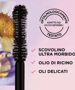 Mascara per ciglia dal volume intenso e lunghezza da estasi con scovolino ultra morbido e bombato alla base per un’applicazione piacevole come una carezza – Ciglia allungate, incurvate e voluminose, Senza grumi, Per uno sguardo divino e incredibilmente intenso – Applicare il mascara dalla radice alla punta delle ciglia superiori stendendo più volte il prodotto, quindi ripetere l’operazione per le ciglia inferiori – Formula cremosa e delicata arricchita con olio di ricino dalle proprietà allunganti, Adatto a occhi sensibili e portatori di lenti a contatto – Contenuto: 1x Mascara Lash Paradise L’Oréal Paris, Colore: Nero, Quantità: 6,4 ml