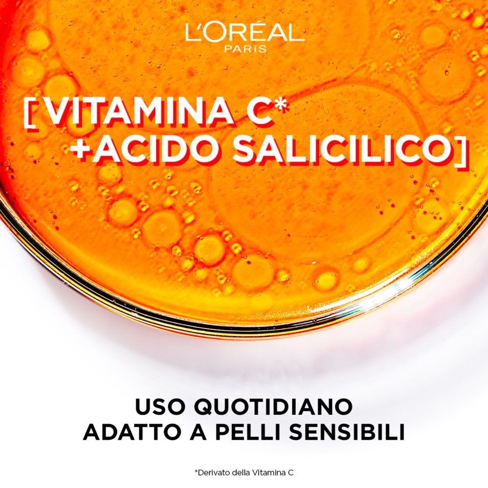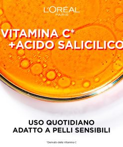 Detergente viso con: – Vitamina C*: attivo antiossidante che aiuta a combattere l’ossidazione, aumentare la luminositĂ e uniformare il tono della pelle – Acido Salicilico: efficace attivo esfoliante che aiuta a ridurre i pori e a levigare la texture della pelle. I risultati sono visibili dopo un solo utilizzo: pelle detersa e purificata che appare morbida e elastica. *Derivato della Vitamina C.