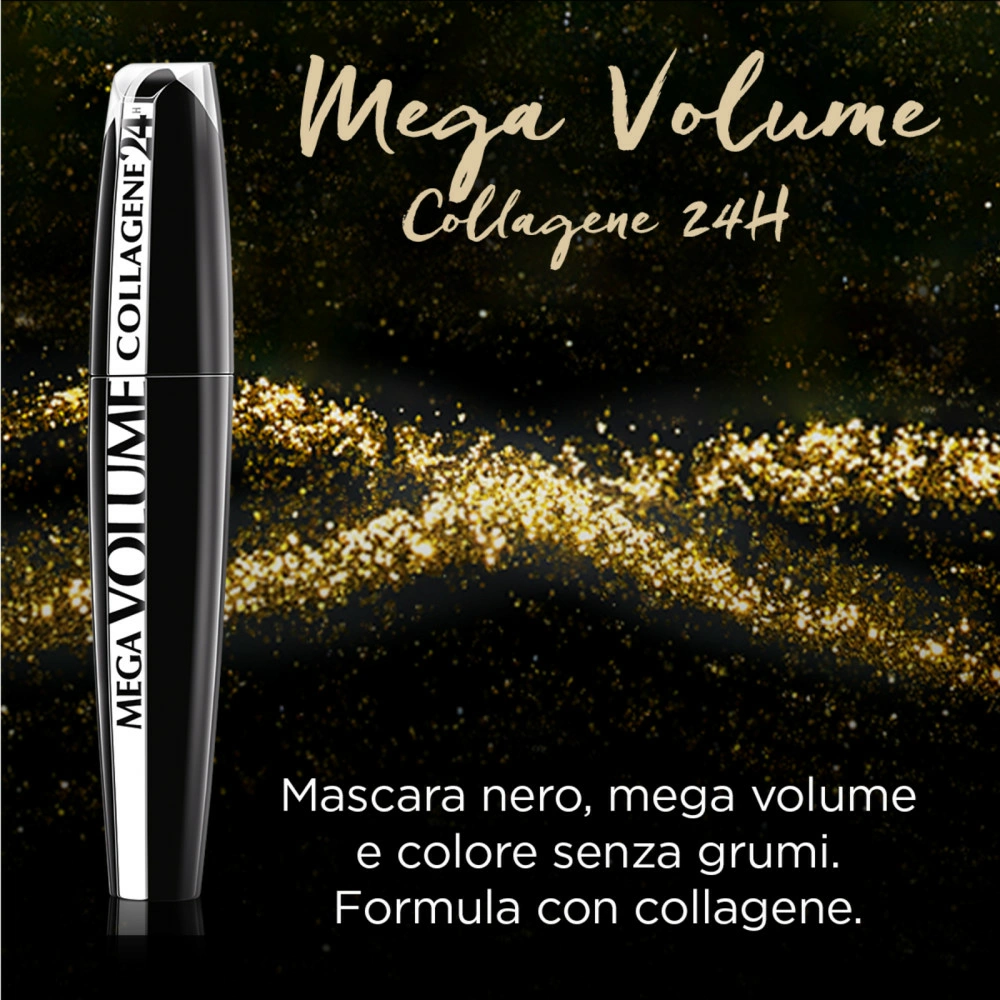 Mascara Mega Volume Collagene 24H per un volume massimo ed una lunghezza estrema.