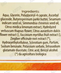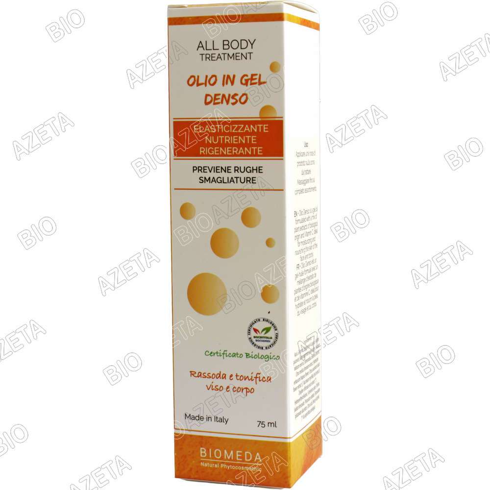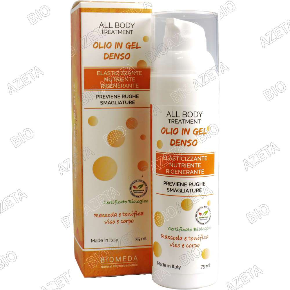 Adatto a viso e corpo, l’olio denso è un gel che si assorbe velocemente senza ungere, idratando e nutrendo la pelle del viso del corpo. Formulato con un mix di estratti vegetali di origine biologica agisce in profondità svolgendo una potente azione elasticizzante e rigenerante. Efficace nella prevenzione di rughe e smagliature, la pelle viene naturalmente levigata, velocizzano così il naturale ciclo di riparazione cellulare. I suoi principi attivi lasciano la pelle morbida ed avvolta in un profumo delicato di agrumi. Agitare prima dell’uso in modo che gli ingredienti si amalgamino bene.