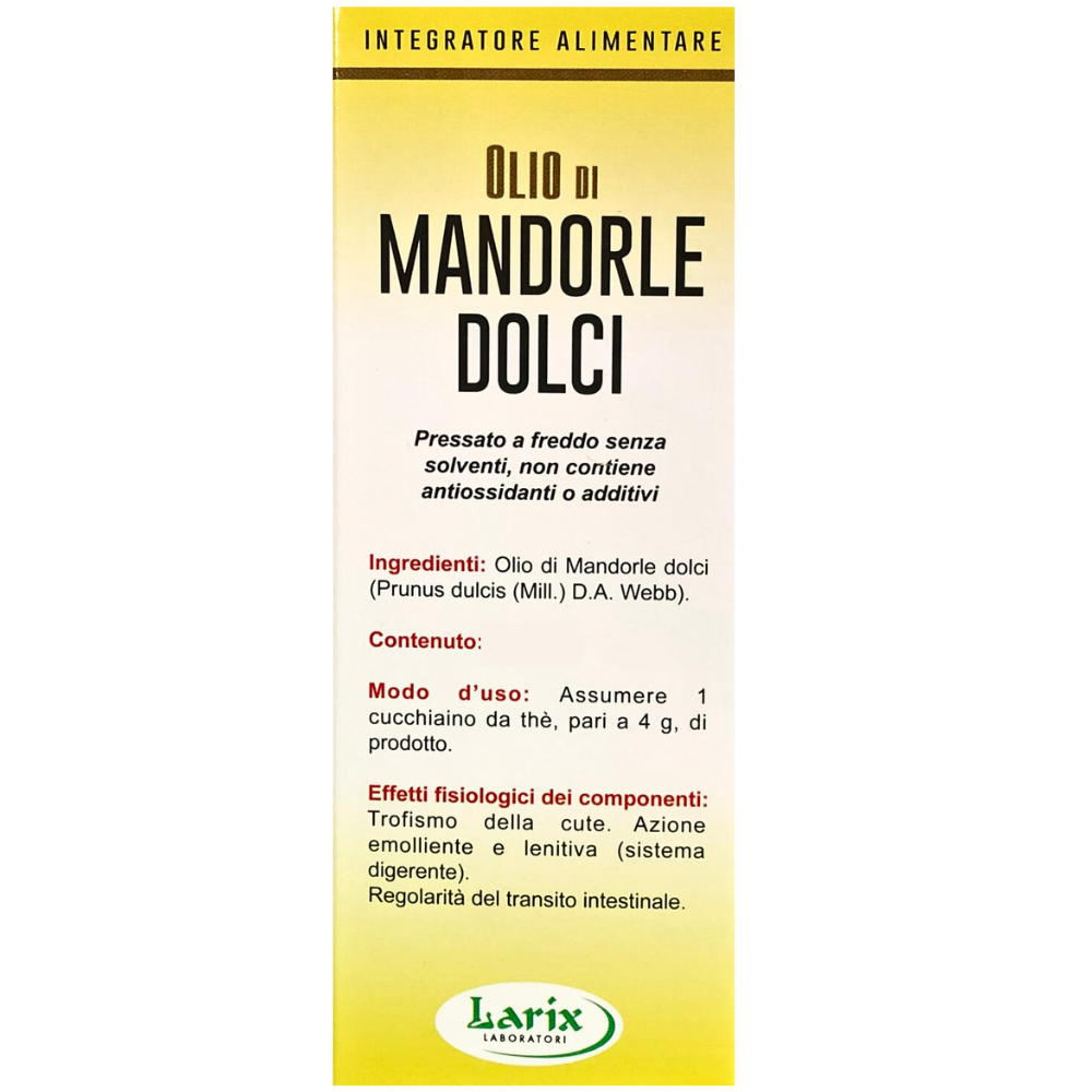 Olio Mandorle dolci Alimentare/Cosmetico 250ml Larix; Azione emolliente e lenitiva (sistema digerente)