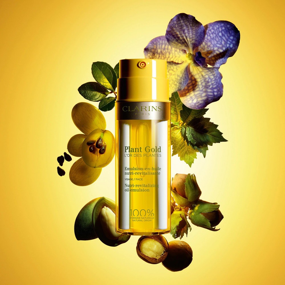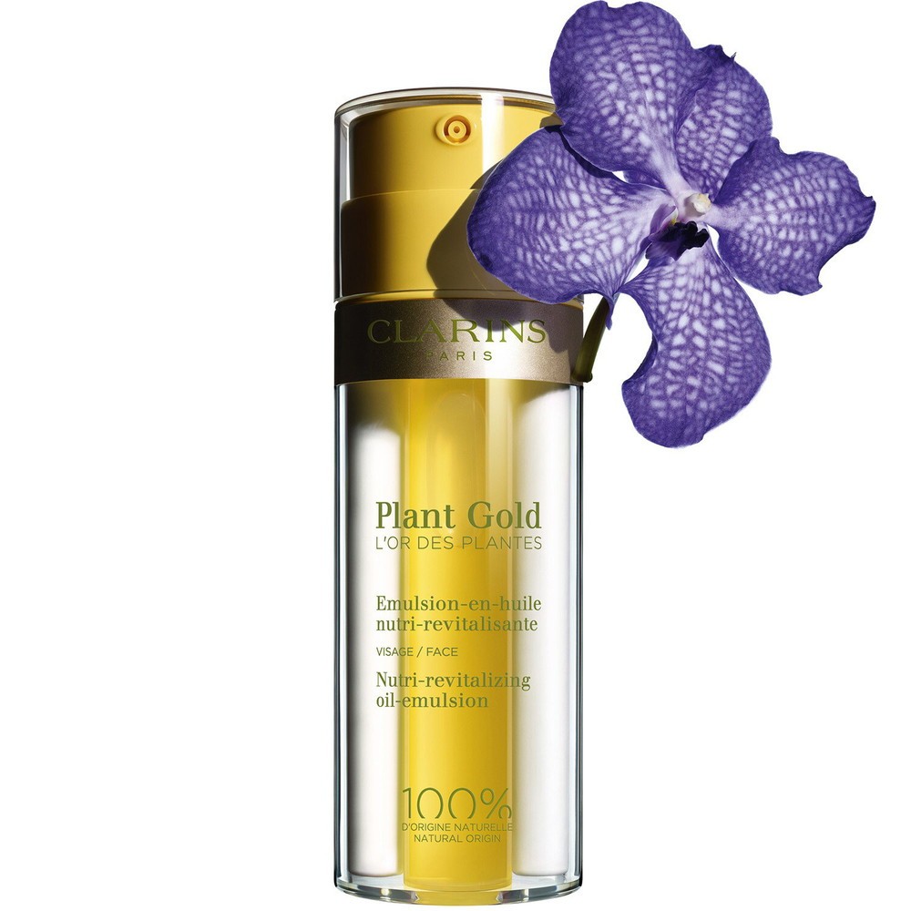 Ispirandosi ai gesti dei professionisti degli istituti, Clarins crea un innovativo doppio flacone dedicato a Plant Gold – l’Oro delle piante. Una doppia formula inedita: l’iconico olio Huile Orchidée Bleue Clarins e un’emulsione fondente si uniscono all’applicazione in una texture leggera e non grassa, conferendo alla pelle comfort, vitalità e luminosità.
