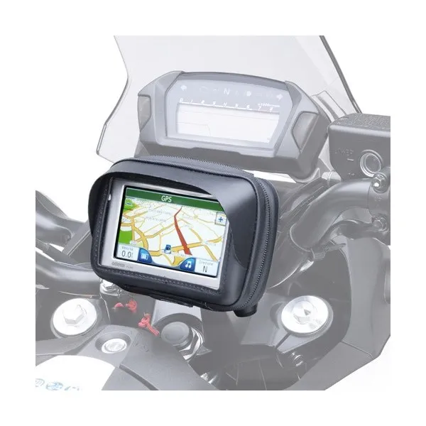 l nuovo porta navigatore GIVI S952 si adatta facilmente alla maggior parte delle moto e ad alcuni scooter, in quanto può essere montato sui manubri tubolari tramite la robusta staffa di cui è dotato. Può essere inoltre comodamente agganciato grazie al sistema di aggancio/sgancio rapido.