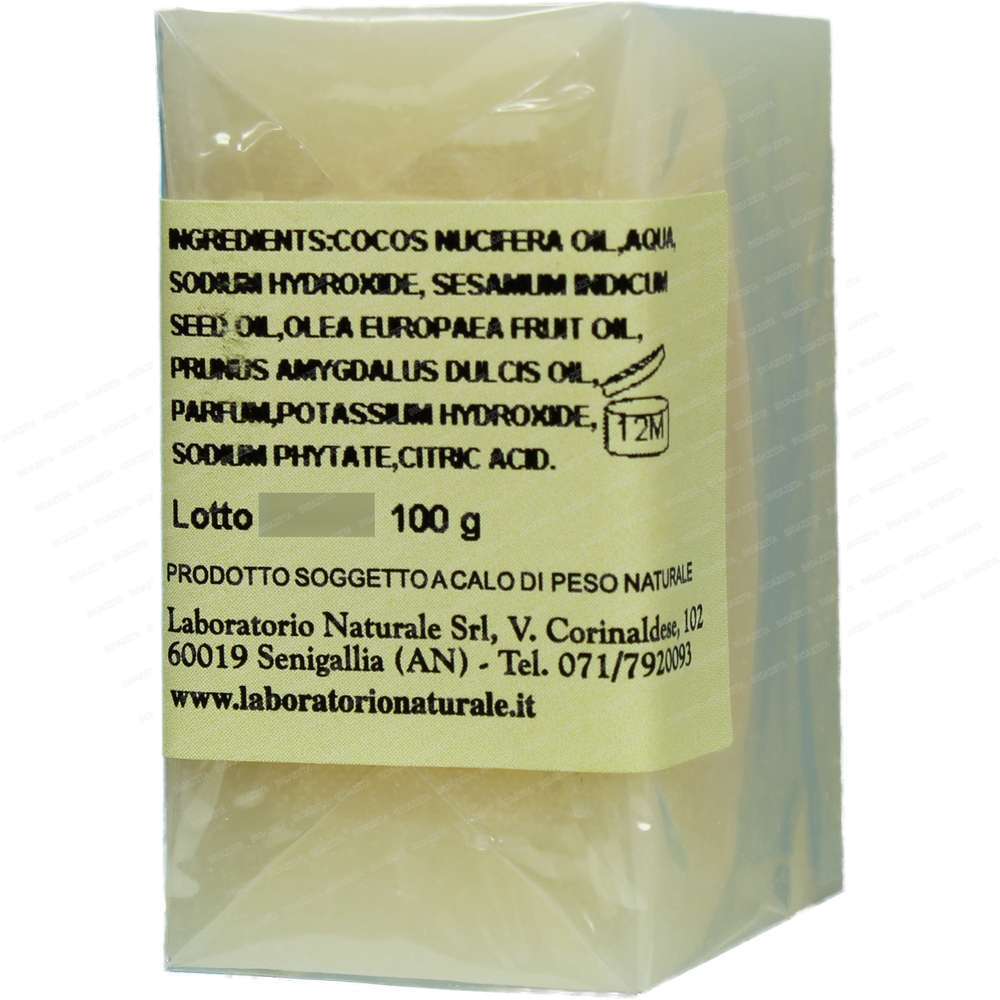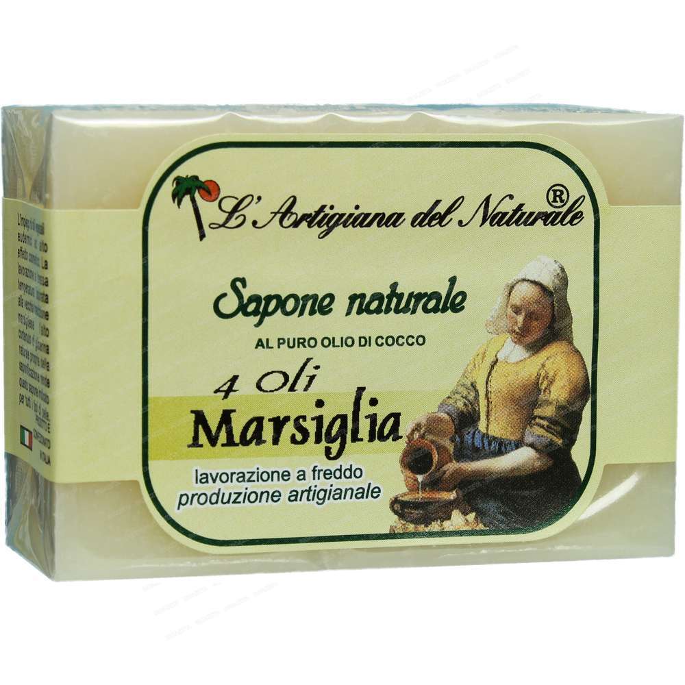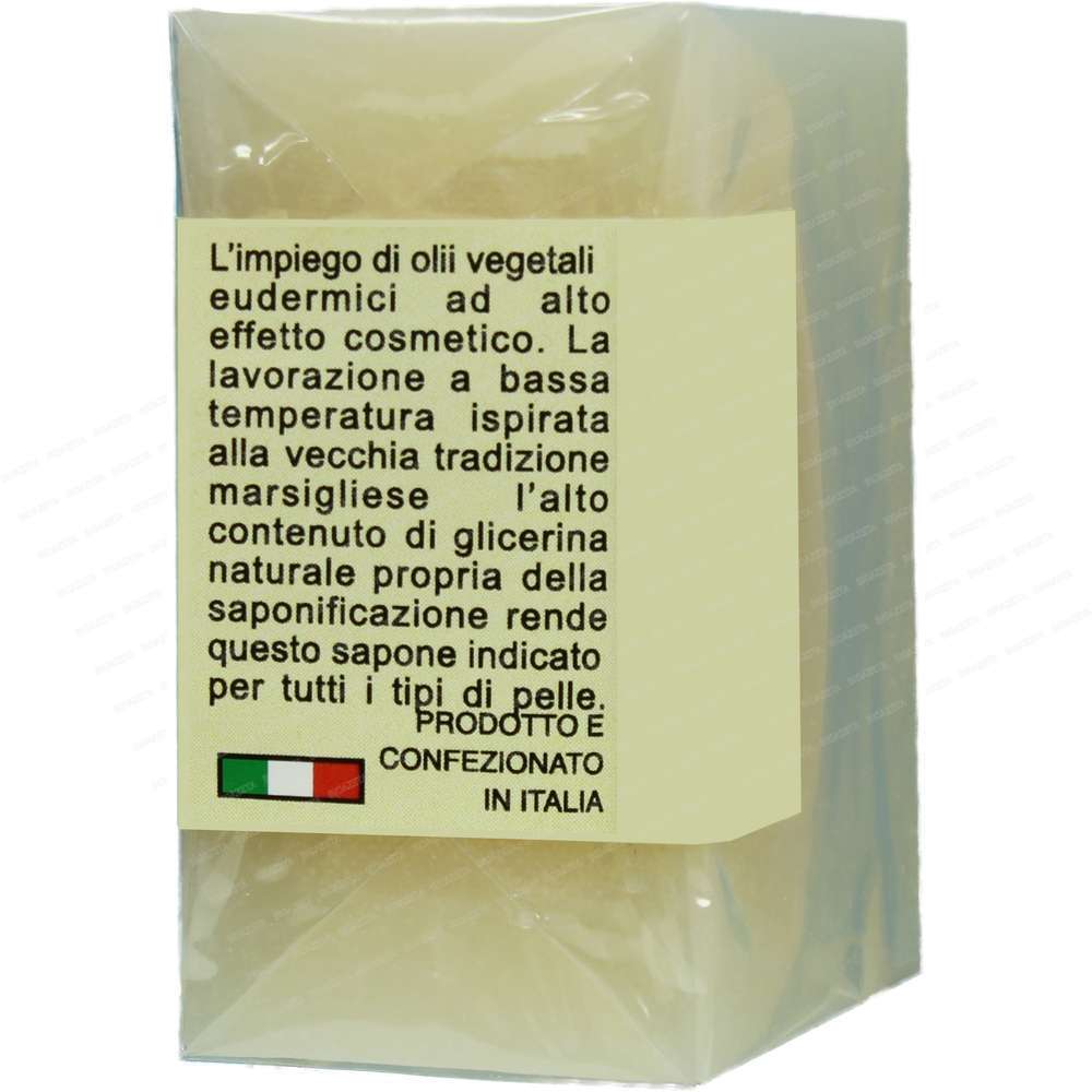 Sapone marsiglia 100g; Sapone artigianale a base di quattro oli: olio di cocco, olio di oliva, olio di mandorla e olio di sesamo. Dalla tipica profumazione floreale del sapone Marsiglia.