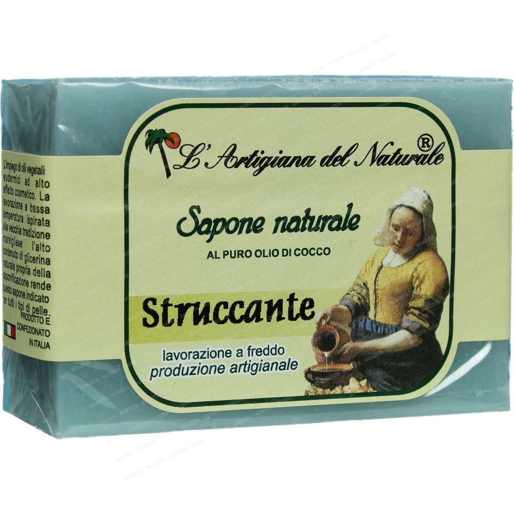 Sapone struccante 100g; Sapone artigianale a base di olio di cocco con glicerina vegetale che ha un leggero potere struccante.