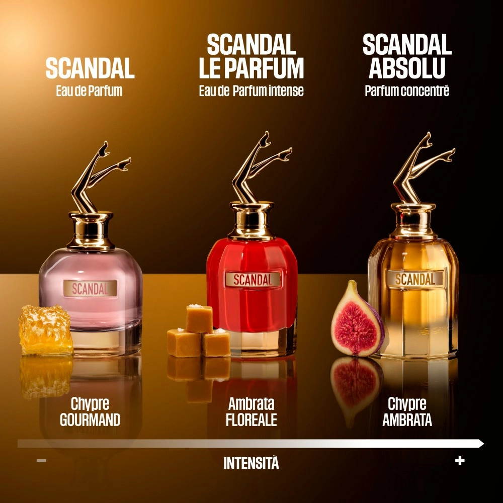 Uno Scandalo assoluto! A infiammare le notti parigine di Jean Paul Gaultier c’è un nuovo scandalo: Scandal Absolu. Sulla pista, le sue gambe nude sfiorano l’indecenza. L’oro laccato brilla di una sensualità senza ritegno. La fragranza chypre ambrata intensa inebria i sensi. Un invito ad accogliere l’eccentricità e a divertirsi fino alle ultime note di festa. Un’audacia irresistibile!