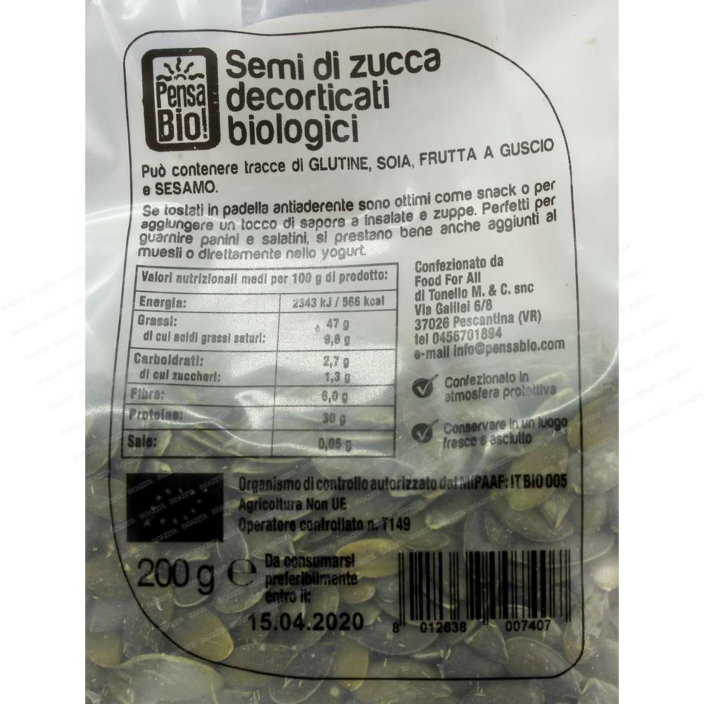 Semi di zucca sgusciati bio 200g Pensa bio