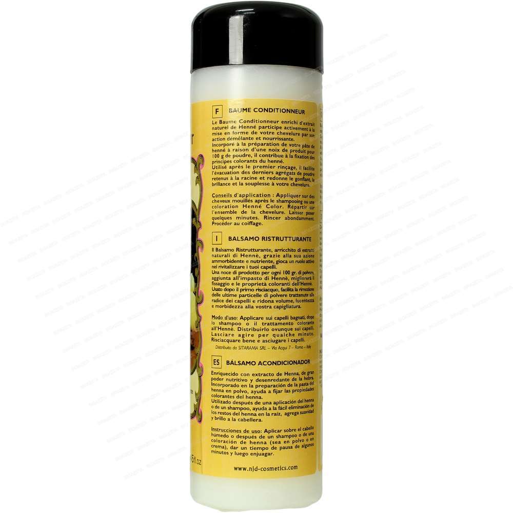 - to rinse the powder and soften the hair: it facilitates the removal of the last henna particles held at the hair root, leaving the hair long soft, shiny and easy to comb.