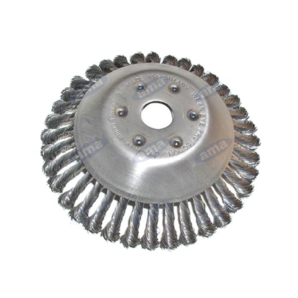 Testina universale a spazzole in acciaio, Ø200mm, ottima per la pulizia di pavimentazioni o ciotolati da erbacce e sporco. Si monta sul decespugliatore come un disco.
