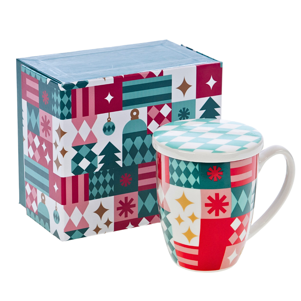 Tazza con filtro e copritazza Santa; Mug in porcellana fine New Bone China da 370 ml, presentato in un elegante cofanetto regalo dal design festivo. Le sue dimensioni compatte (11x5x8 cm) e il filtro integrato lo rendono un prodotto pratico ed elegante. Colori : multicolore (rosso, verde, bianco, azzurro).