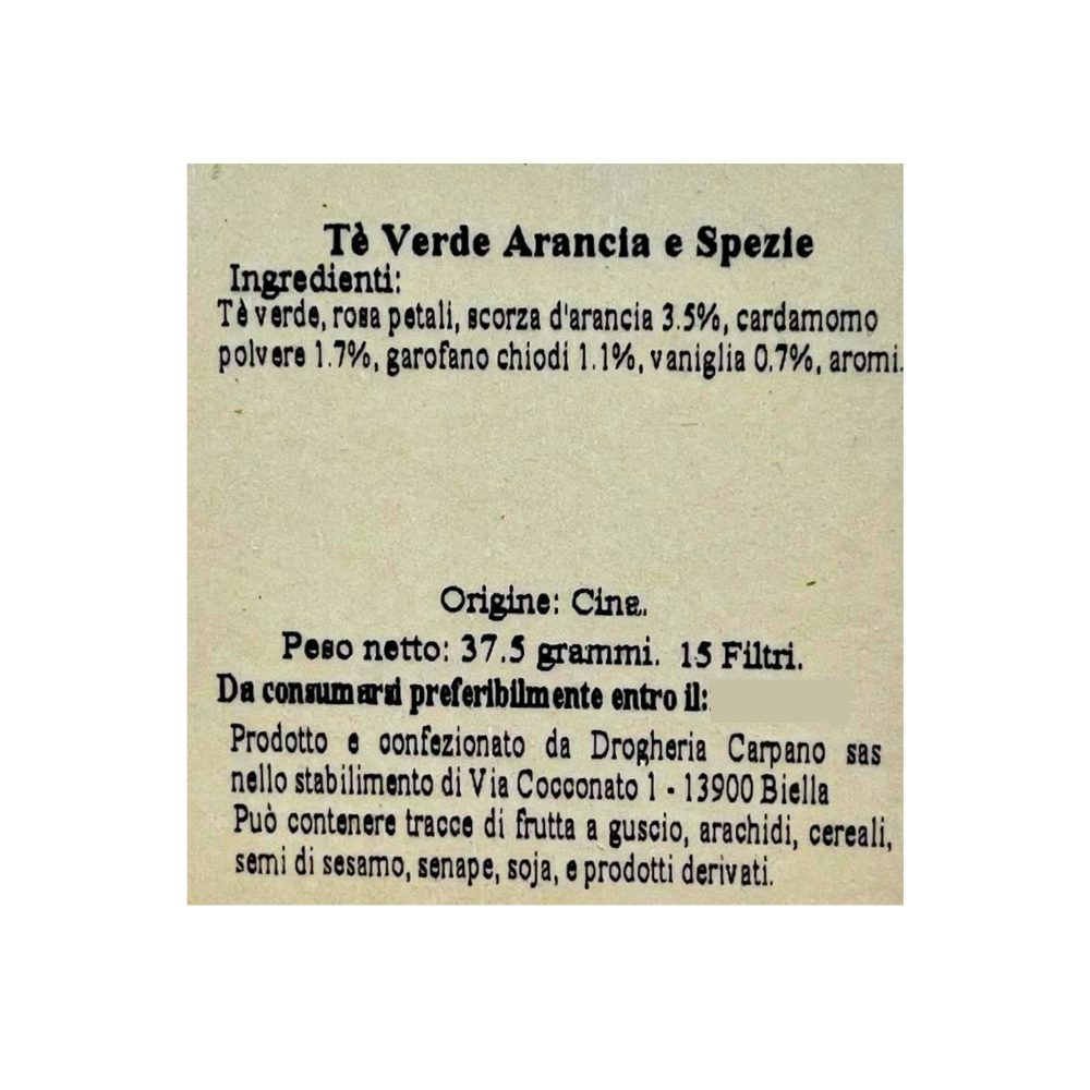 Tè Verde arancia e spezie 15 filtri piramidali Carpano