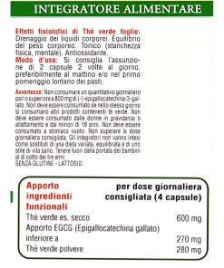 The verde 60 capsule Larix; Ingredienti per opercolo: The verde (Camelia sinensis L. Kuntze) foglie es. secco (95% polifenoli) 150 mg e