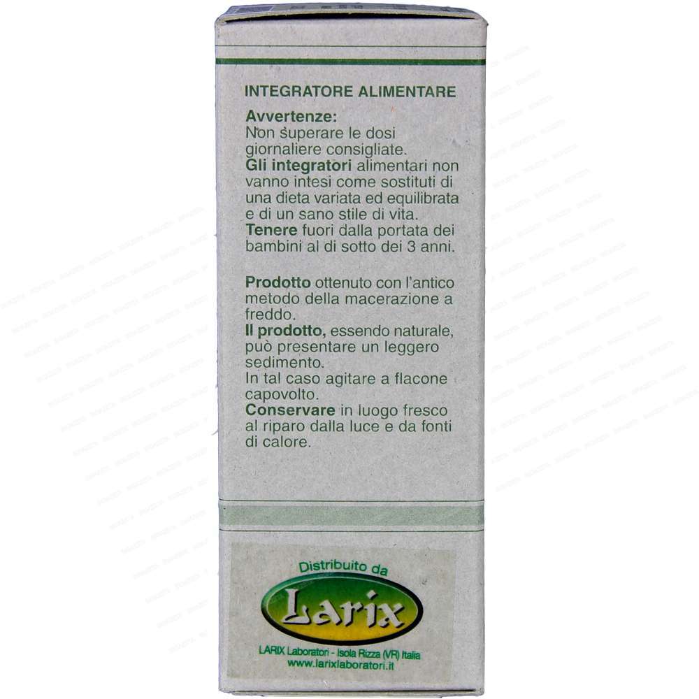 Gli estratti idroalcolici Larix sono ottenuti da piante fresche spontanee e da piccole coltivazioni biologiche. Eccezionalmente per le piante che non crescono in Italia abbiamo scelto quelle che offrono la maggior garanzia di qualità . (Serietà dell’ importatore, certificati di analisi ecc.). Il metodo estrattivo è quello della macerazione a freddo in alcool B.G neutro e acqua di origine montana. Grande importanza è stata data al periodo di raccolta delle piante, facendolo coincidere con il giusto TEMPO BALSAMICO, per avere così la massima concentrazione in principi attivi. Confezioni da 50 ml con pompetta contagocce imbustata a parte.