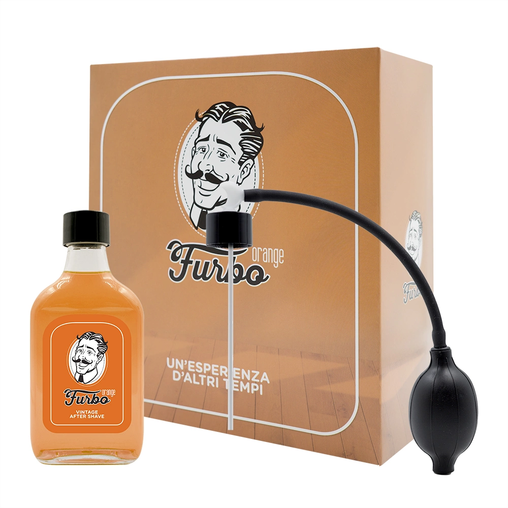 Furbo Vintage Orange After Shave 200ml lozione dopobarba lenitiva e tonificante dalla fragranza vintage e iconica, per un uomo elegante. Modo d’uso : dopo la rasatura, applicare un generoso splash picchiettando sul viso oppure utilizandolo speciale vaporizzatore. Furbo Vapos nero per vivere l’esperienza d’altri tempi come dal barbiere. Modo d’uso: Chiudi gli occhi… un caldo abbraccio della fragranza ti catapulterà sulla poltrona del barbiere.