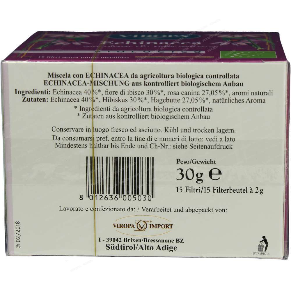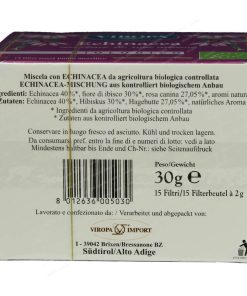 Viropa Echinacea bio, L’Echinacea (Echinacea angustifolia) è un arbusto alto di ca. 60 cm ed ha le sue origini nel Nordamerica. La popolazione indiana che vive nella zona, già da molto tempo conosce ed apprezza le molteplici virtù di questa pianta. La medicina popolare indiana gli attribuisce un valido sostegno nelle infezioni delle vie respiratorie e per rafforzare il sistema immunitario in generale.